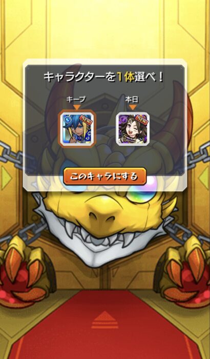 手始めに実装されたのが毎キープガチャ。何かと言うと読んで字の如く、13日間1日1回ガチャを回せて排出されたキャラをキープし続けられるイベントです。毎回どちらかを選択してキープ出来るのでなかなか面白い仕様かと。