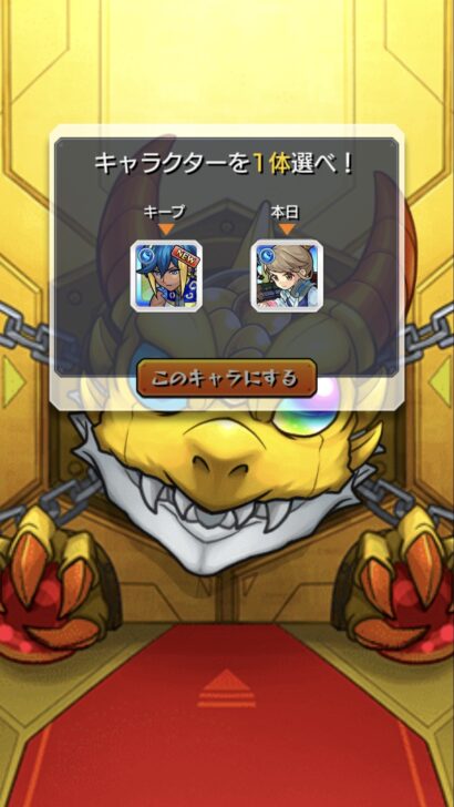 手始めに実装されたのが毎キープガチャ。何かと言うと読んで字の如く、13日間1日1回ガチャを回せて排出されたキャラをキープし続けられるイベントです。毎回どちらかを選択してキープ出来るのでなかなか面白い仕様かと。