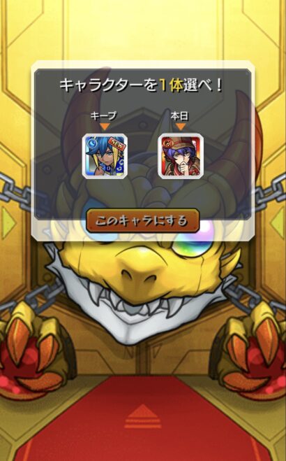 手始めに実装されたのが毎キープガチャ。何かと言うと読んで字の如く、13日間1日1回ガチャを回せて排出されたキャラをキープし続けられるイベントです。毎回どちらかを選択してキープ出来るのでなかなか面白い仕様かと。