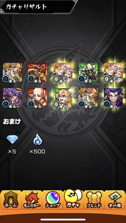 今回はそこまで是が非でもってキャラは居ませんが怖いのはエルコニですかね。スペックが尖り過ぎてて現環境では使い道に悩むものの、風雷αのように急に接待来ると替えが効かない可能性があるのよね。そんな変に期待して引いたガチャの結果はこちら↓