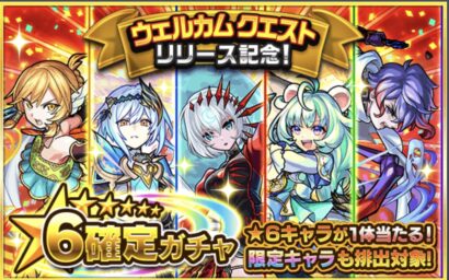 仕事が終わったと同時にアプデが完了しており、初心者用のウェルカムクエストリリース記念として既存のユーザーには☆6確定ガチャが配布されました。