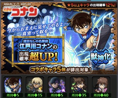 絶賛開催中のコナンコラボですが、各種イベントは既に片付いておるので特に困る事も無いのですが、非常に悩ましいのがガチャ。私にしては珍しく元々の手持ち+αでサクッとコンプした訳ですが、それが故に☆4〜5が90になってないんですよね。