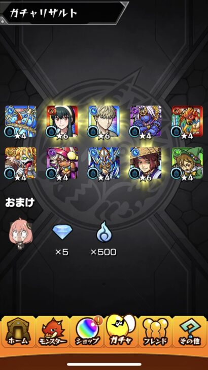 アーニャはここ最近推して来るアンチ転送壁持ちなので将来性は高めよね。どちらにせよ、超獣キャラも未所持が多めな人はまとめて引くのは良いかもしれません。私は取り敢えずヨルさん出たら撤退で良いかな程度で10連のみ回す事に。