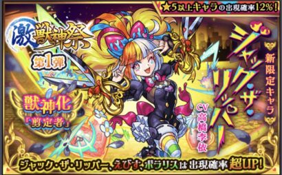 激獣神祭新限定ジャック・ザ・リッパー。スペックだけ見るとライト層には羨ましい限りです。何でかって?コイツが明確に刺さる所がEXウエトリヒしか無いからですかね。つまり、EX周回をしないライト層はガン無視出来るからある意味で羨ましいって事ですw