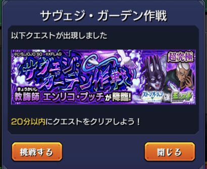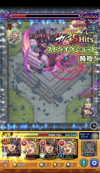 承太郎の遅延が良い仕事してた印象。ラスゲに承太郎のSS1つとパックが残ってれば勝ち確かな?1体潰しでもイケる人はカッパを連れていけばボス1で終わらせられますね。勝っても勲章と称号だけなので、やらなくても困りません。