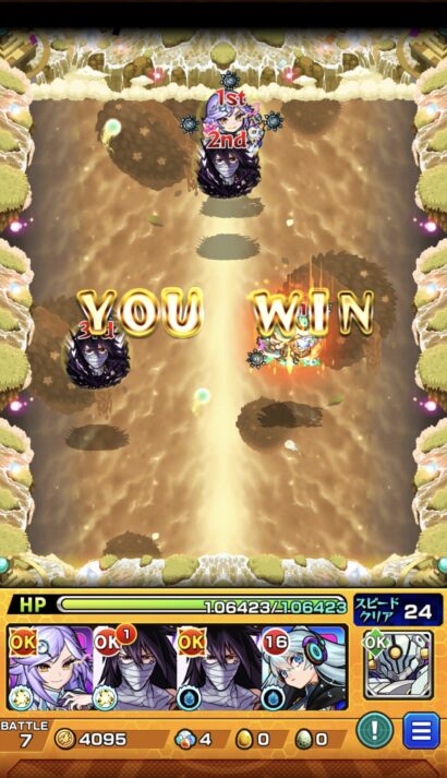 今回の決勝戦は爆絶エリュシオンでした。当時、爆絶にしては難しくて苦戦した記憶があります。ハーレーでワンパンして時短するのが攻略法としては主流だったような。