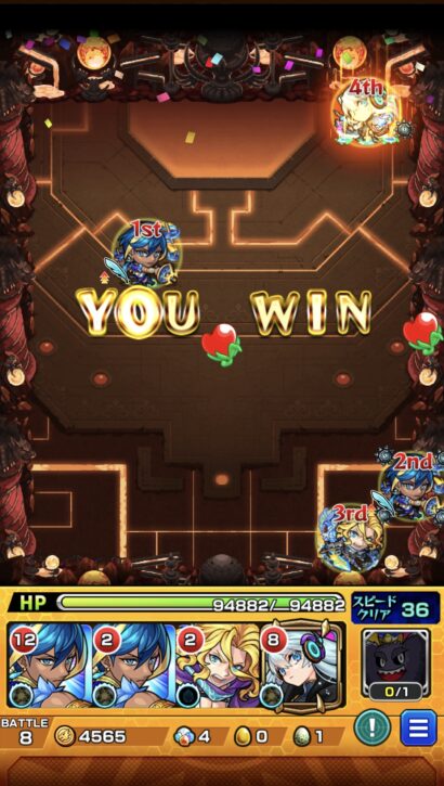 今回も決勝までスッと到達。最後の相手はゲヘナでした。てか、コイツ爆絶だったのか。テキトーに編成したら危うく負けそうでしたw マッハで全て回収終える事が出来たので良き。