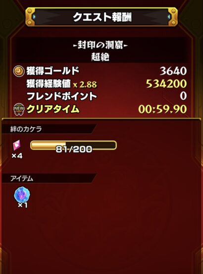 オマケにコラボスキルの追加により30分限定ですが経験値が50%上がるのでランク上げに守護獣の周回が固定打ちが可能で効率が良いみたいです。