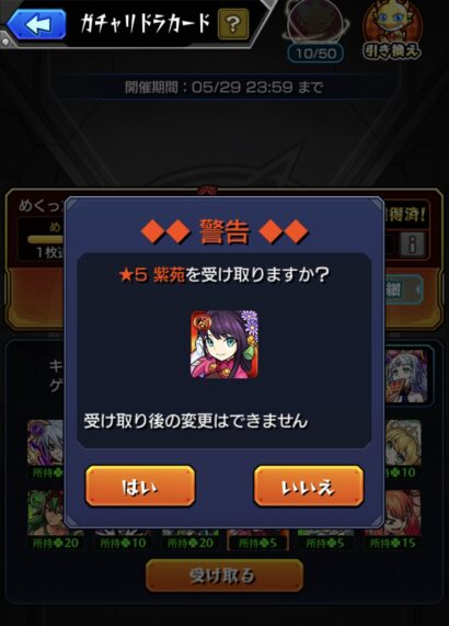 既にある程度手持ちが揃ってるので初ゲを引き当てるのは困難。よってラック上げか複数所持していないキャラの2択になります。