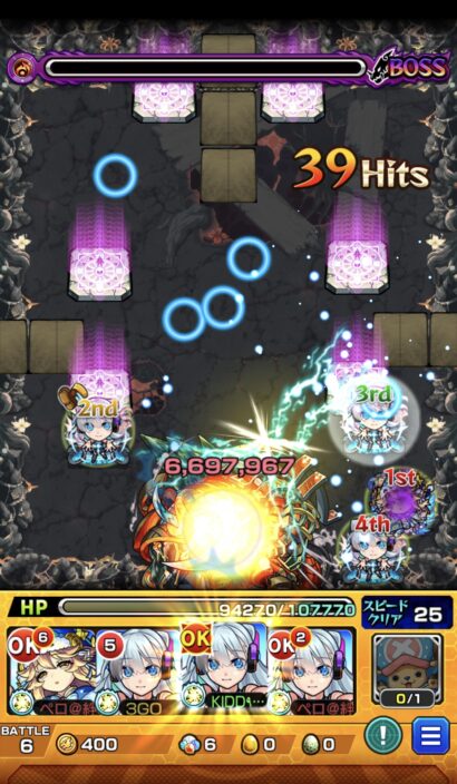 そして、いつ振りか分からないくらい久々に1の獄から始まると。初実装初日に全ユーザーをドン底に陥れた極悪ステージでしたが、今となっては完全にキャラゲー化してしまいましたね。