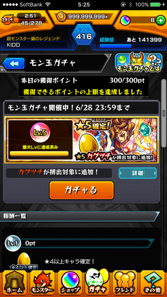 モン玉ガチャがいよいよMAXまで溜まり