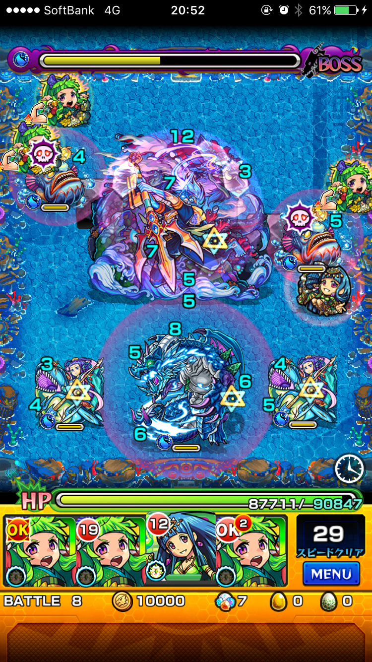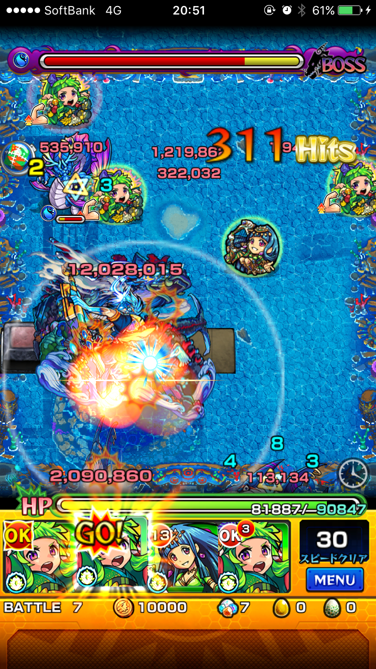 20:00より爆絶ニライカナイが降臨中。今回は獣神化蒲公英を複数体積んでのお試しプレイで遊んでみる事に(^-^)