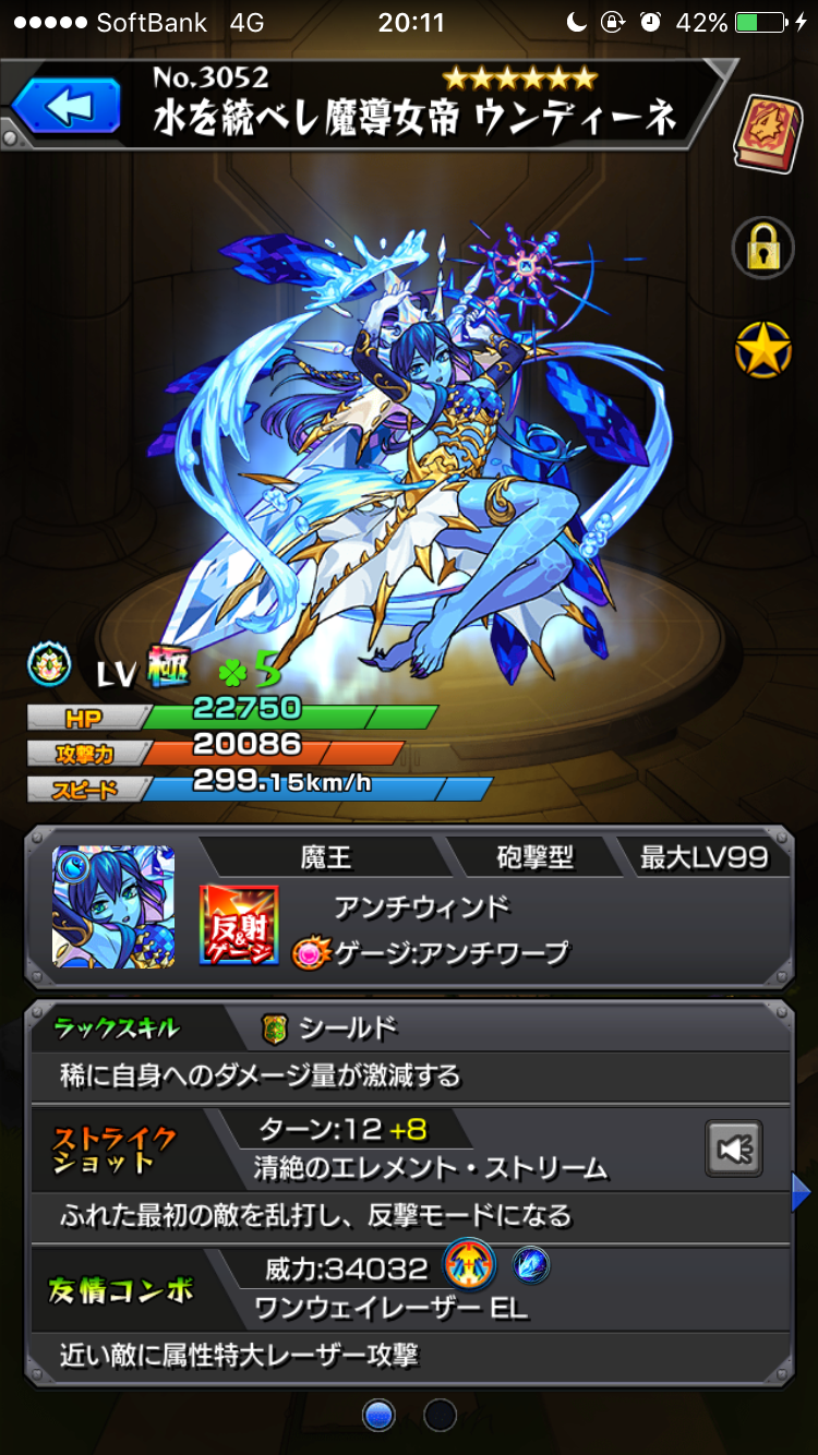 本日15:00よりウンディーネの獣神化が実装されました。人によって現役バリバリだったり倉庫番だったりとマチマチなウンディーネですが気になるステは…