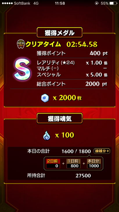 現在の私の力量ではこれがベストかもしれません。グランプリだったら予選1回戦で敗退でしょうw まだまだ降臨予定なので2分台前半目指してまたトライします。