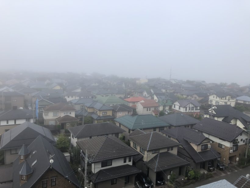とにかくいつも見えてる角田・弥彦はもちろん、家並の奥に見えるはずの信濃川すら見えないという、年に数回の風景だったので思わず意味も無く写真を撮っちゃいました。