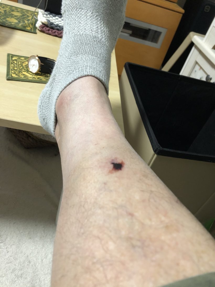 なんかわかんないんですけど右足がペダル踏み外して脛をペダルに強打してしまいました。