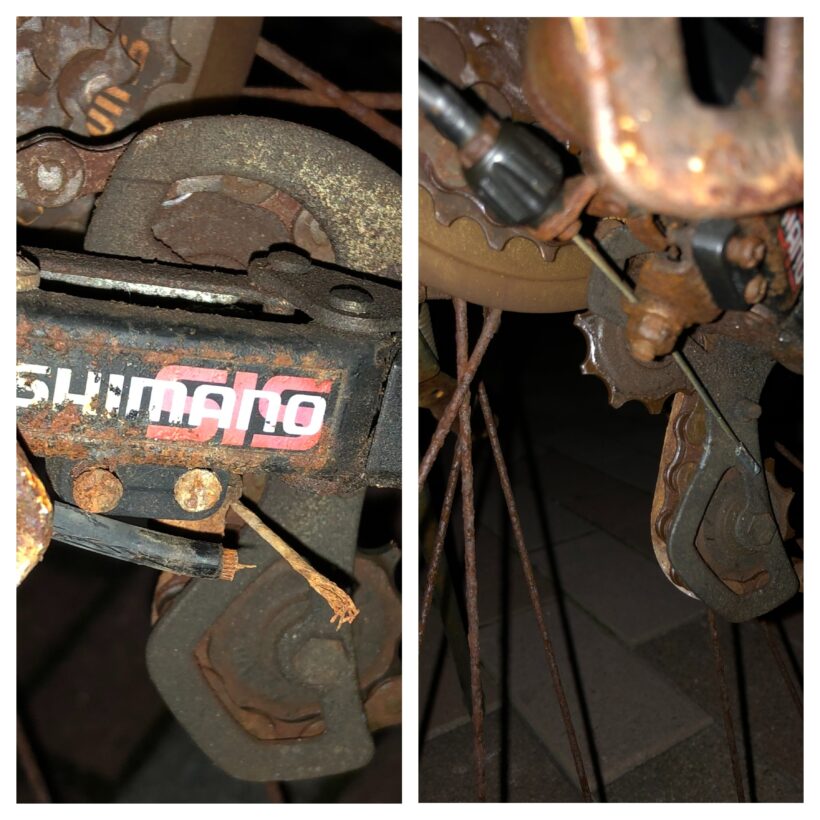 わかりにくいですが、左がビフォー、ワイヤーがブチ切れています。