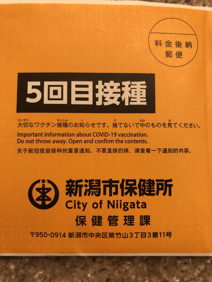 で、封筒の色ですが、1・2回目が黄色、3回目が赤、4回目が青、そして今回5回目が
