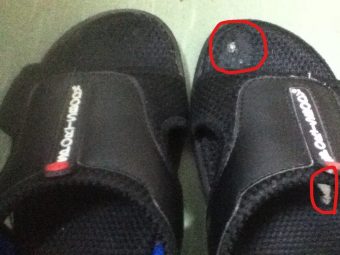 なんか右足にだけ圧倒的な力がかかって、表面が擦り切れているようです。