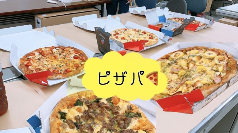 この雨の中、ピザとお皿とジュースを買いに行ってくれた先輩方ありがとうございました…!セッティングして下さった先輩方もありがとうございます!