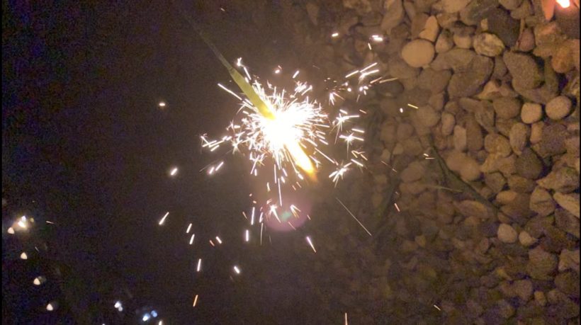 私は今日、今年初花火をして、見ています。