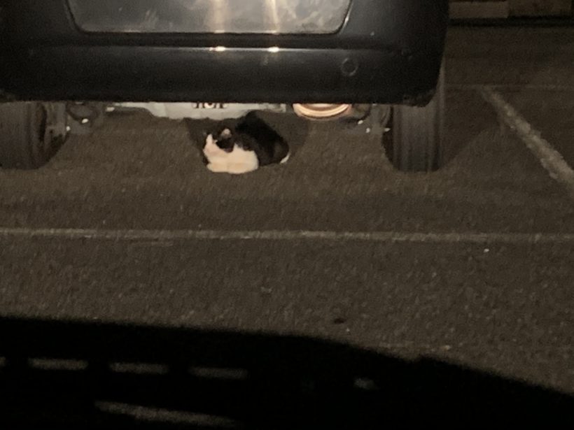 おうちの駐車場に着いたらまさかの、お猫様がお出迎えしてくれました。
