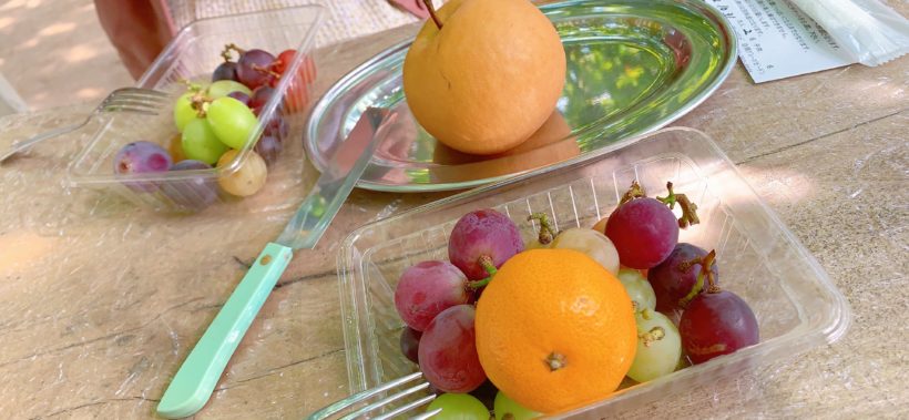 行ったら、バイキング形式でぶどう以外にも梨とみかんと柿がありました!!