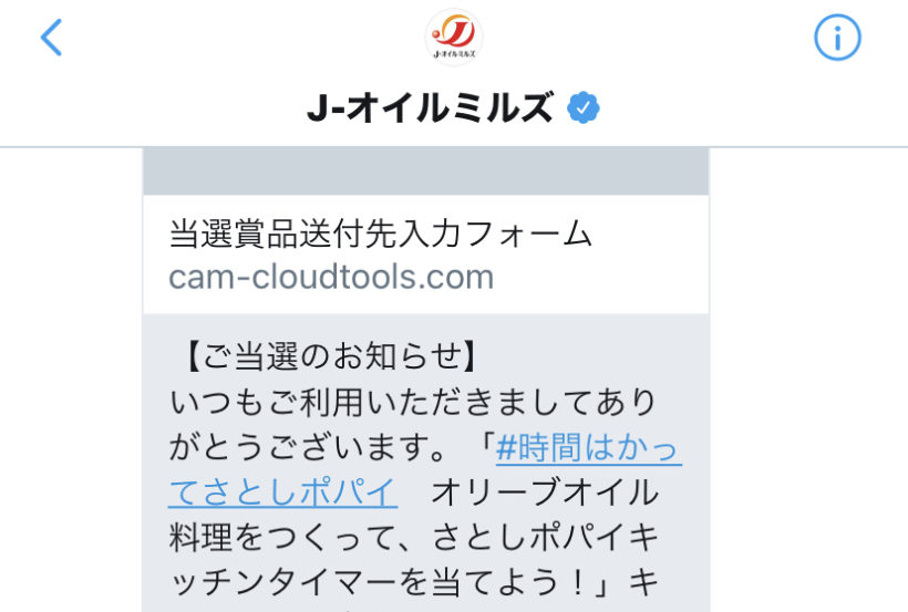 J-オイルミルズさんより、当選の連絡がTwitterに来ましたー!!やったー!!