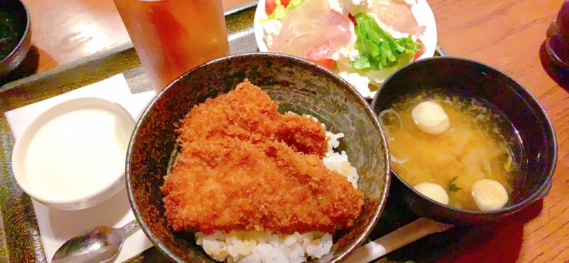とんかつ政ちゃんで、レディースセットを頼んだ時の写真です。サラダが美味し〜!!生ハムサラダにしました!!