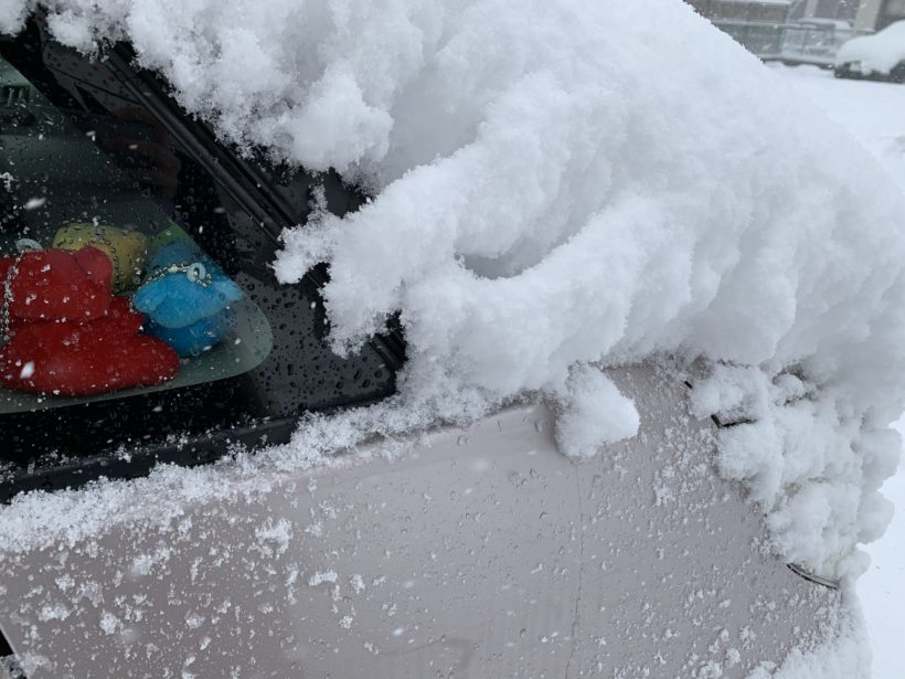 私の車雪降ってから雪かきしてなかったから、酷い有様です。信じられない。