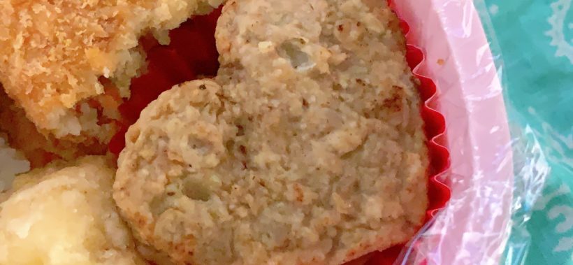 このハンバーグ、レンチン。冷凍食品なんですけど、ハートが入っていたらラッキー!らしいんですよ!!そういうの大好き!!