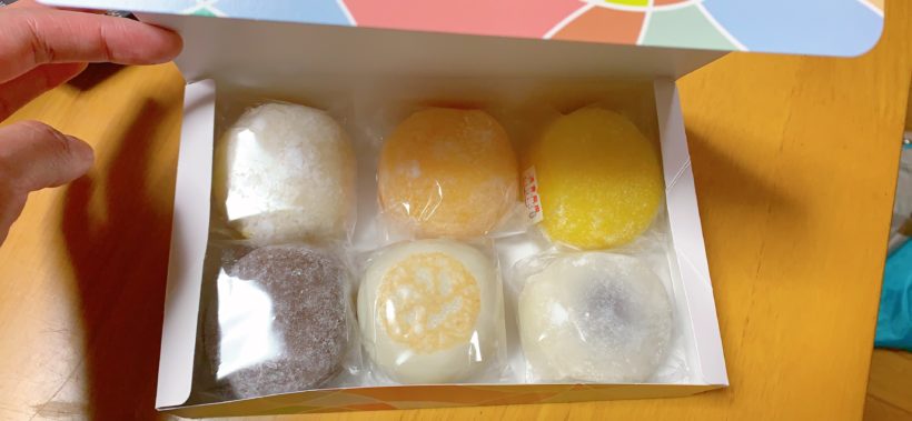 お盆にズラーっと並んでいる大福を消毒した手でひとつずつ取っていく。