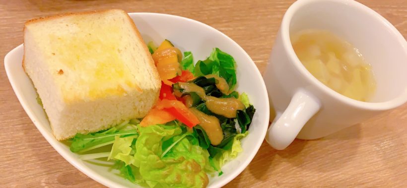 厚いトーストはマーガリンが塗ってあって、サクサクで美味しかったです!!最後に残さないのが〇。