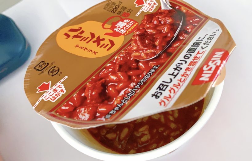 ご飯にルーがドカンと入っている見た目に驚きますがお湯を入れて、ご飯とお湯で別れてる…美味しくなるのか?クルクルかき混ぜると不思議ととろみがたくさん出てきて、とろとろハヤシライスになります。