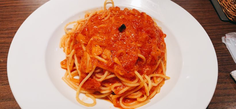 こちらがトマトとニンニクのスパゲティー。