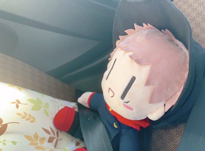 つい最近取れて、我が家に来た虎杖くん。後部座席に乗ってます。帽子は私がかぶせました。かわいい。