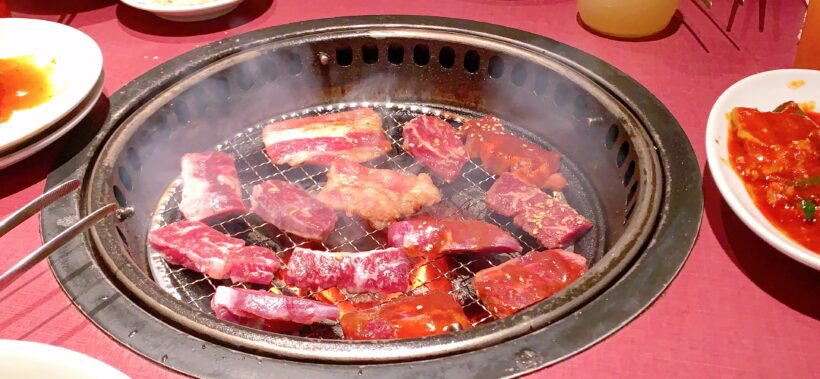 この焼肉、まるで食べ始めたみたいな勢いのお肉の量…ですが…なんと…制限時間内最後の追い上げの肉でした。