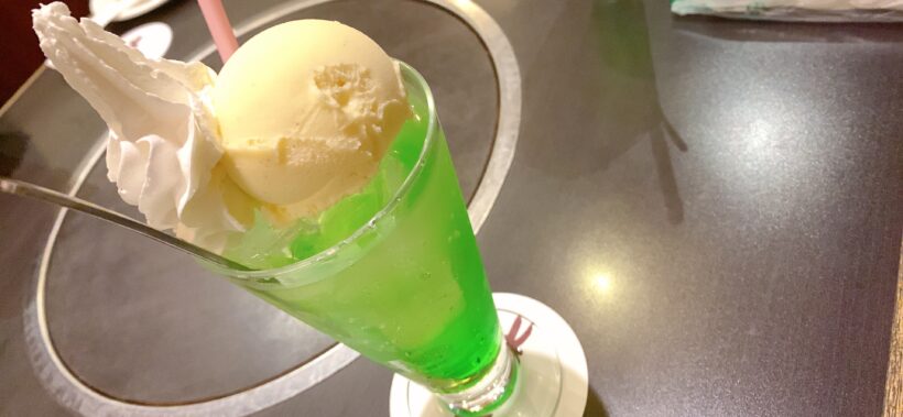 このクリームソーダが喉を通るとひんやりして気持ちいいんですよねぇ。