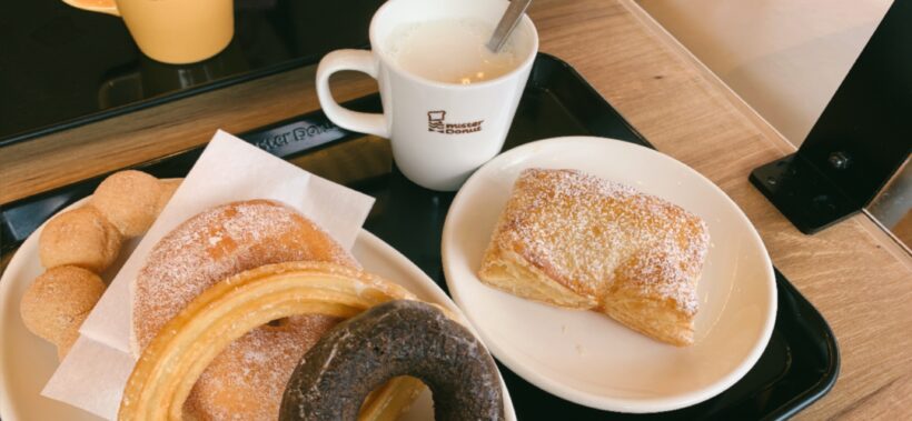 ミスドに行くと、2つくらい取って飲み物買って食べますけど…