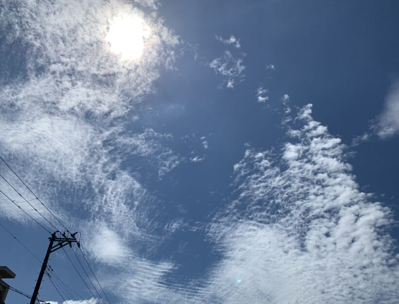 太陽と荒いブラシで擦ったかのような雲!まさに夏!?まさにかは、分からないけど、夏にしか見れない雲な気がしますね。