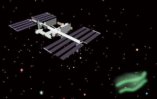 イラストレーターで、国際宇宙ステーションを制作していたのですが、途中でめんどくさくなって中途半端にごまかしています。