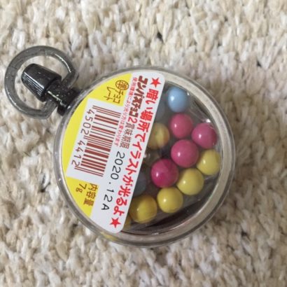 裏にチョコが入っていました。実用的(?)なお菓子ですね。買ったら友達に「何に使うん」ときかれたので「みちに迷ったとき」と答えたら「スマホにしろ」と正論をいわれました。