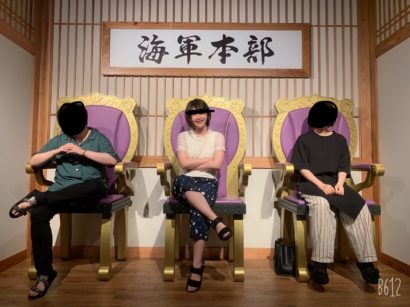 そして終わった後に海軍本部の椅子を見つけて友達と記念撮影。
