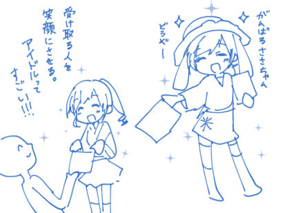 アイドルに手渡されるとみんな笑顔に…。すごい、これがアイドルパワー!!