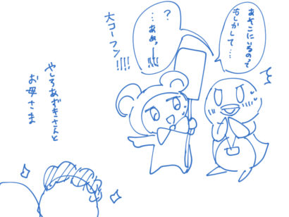 すぐさま受付のひぐちさんに、「あの方々ってもしかしてやしろさん達じゃないですか?」と確認しに行くと、大ファンなひぐちさんが「…あぁ~~~~~!!!」っと興奮していました。