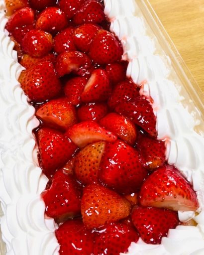 母がコストコフェアでとても大きいケーキを買ってきてしまいした。
