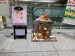コメ袋で作られたアマビエがいました。ハロウィン仕様です!