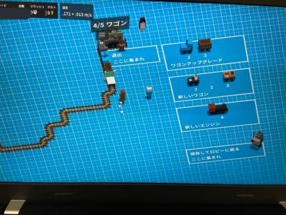 進み続ける列車を横目に木材を切り、岩を削り、レールを作って敷くゲームです。