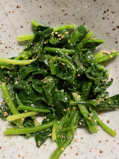 今日は初めてほうれん草の胡麻和えを作りました〜