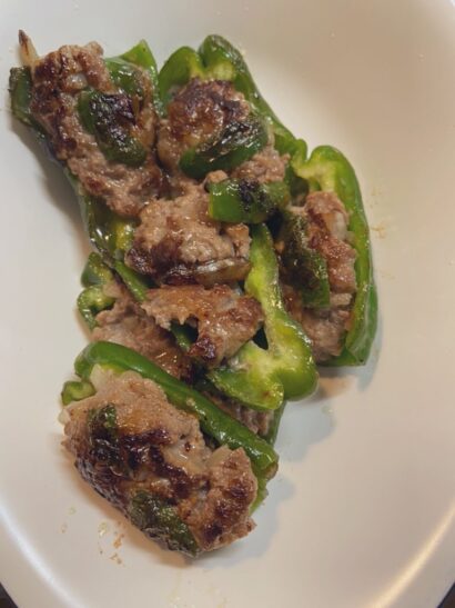 そして写真の通りの映えないピーマンの肉詰めの完成!!